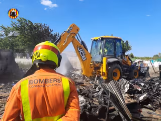 La "principal dificultad" para los efectivos ha resultado ser la acumulación de chatarra, envases de butano y esprays, que han llegado a generar explosiones. En las tareas de extinción, los bomberos han contado con apoyo de una retroexcavadora y la cuba municipal.