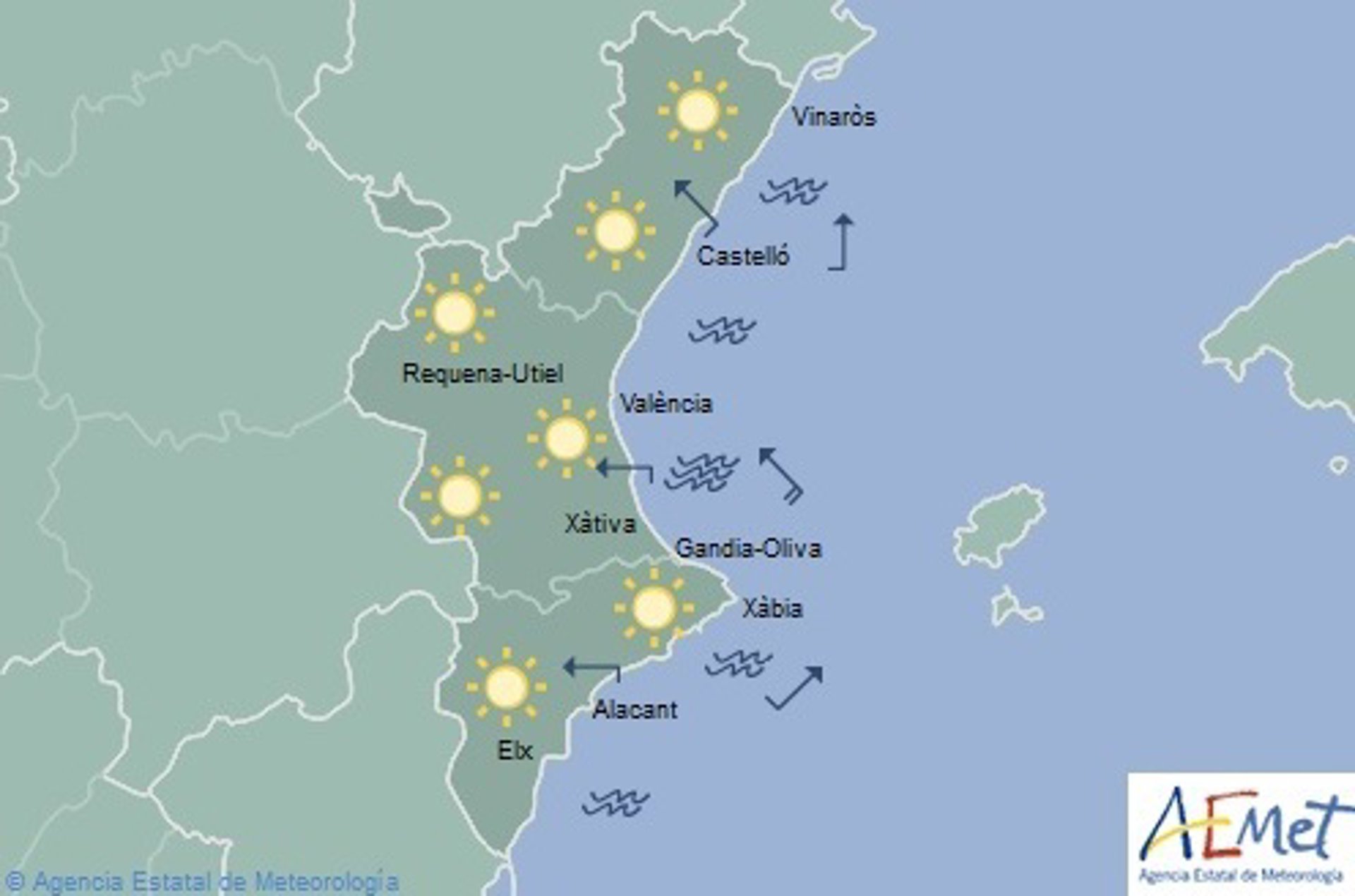 redominio de cielo despejado. Temperaturas con pocas variaciones salvo ascensos de las máximas en el interior. Viento variable flojo con brisas en el litoral, excepto intervalos de noroeste moderado de madrugada en el interior norte de Castellón.