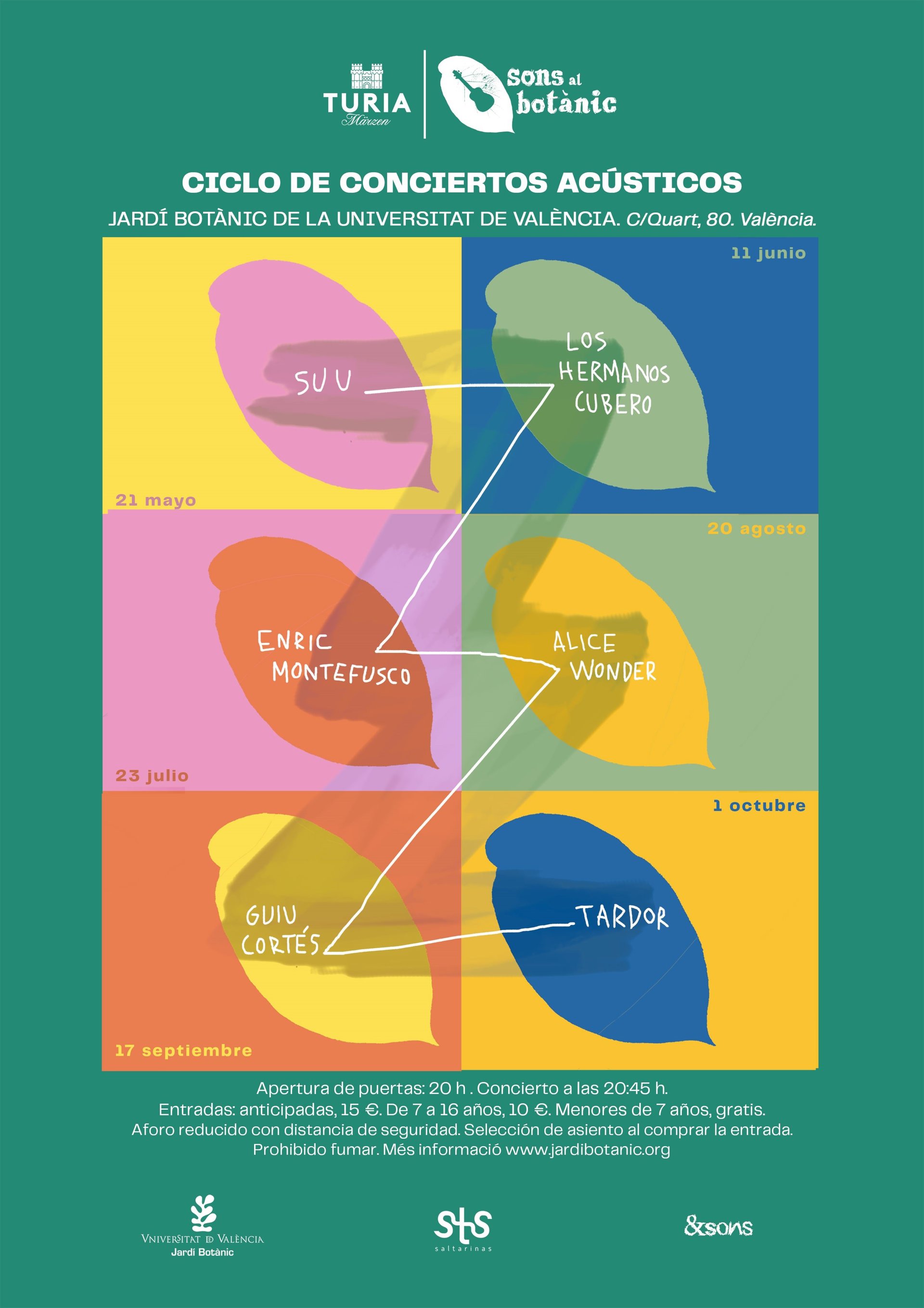 El cartel y las fechas son las siguientes: 21 de mayo, Suu; 11 de junio, Los Hermanos Cubero; 23 de julio, Enric Montefusco; 20 de agosto, Alice Wonder; 17 de septiembre, Guiu Cortés (El Niño de la Hipoteca); y 1 de octubre, Tardor.