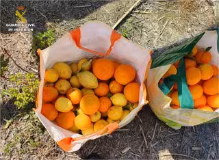 El Equipo Equipo contra el Robo en el Campo (ROCA) de Calp (Alicante) recibió el aviso de que posiblemente en un terreno agrícola se estaba cometiendo un hurto. Al llegar a la finca, los agentes sorprendieron a dos hombres que estaban cogiendo naranjas y limones e introduciéndolos en el maletero de un coche.