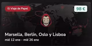Desde hoy, los seguidores de La Casa de Papel podrán visitar en un mismo viaje las ciudades que dan nombre a los personajes con la intriga de saber que sucederá en cada capítulo, a través de rutas especiales que combinan un máximo de cinco destinos.