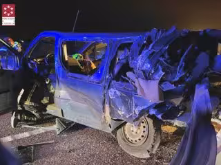 Según ha informado el Consorcio Provincial de Bomberos de Castellón, en la furgoneta viajaban nueve pasajeros, dos de los cuales quedaron atrapados en el interior.