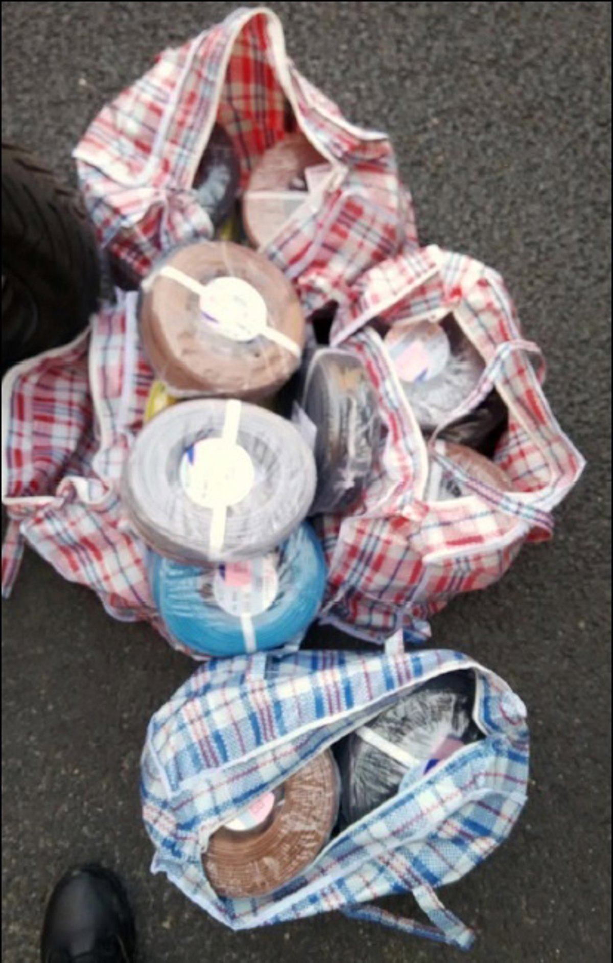 Al solicitarles que justificasen su procedencia mediante factura, albarán o ticket, el conductor se mostró muy nervioso, no pudiendo justificar la procedencia y alegó que se lo había regalado un amigo. Ante ello, y a expensas de acreditar la pertenencia, se intervino la mercancía con un total de 40 rollos de 100 metros cada uno.