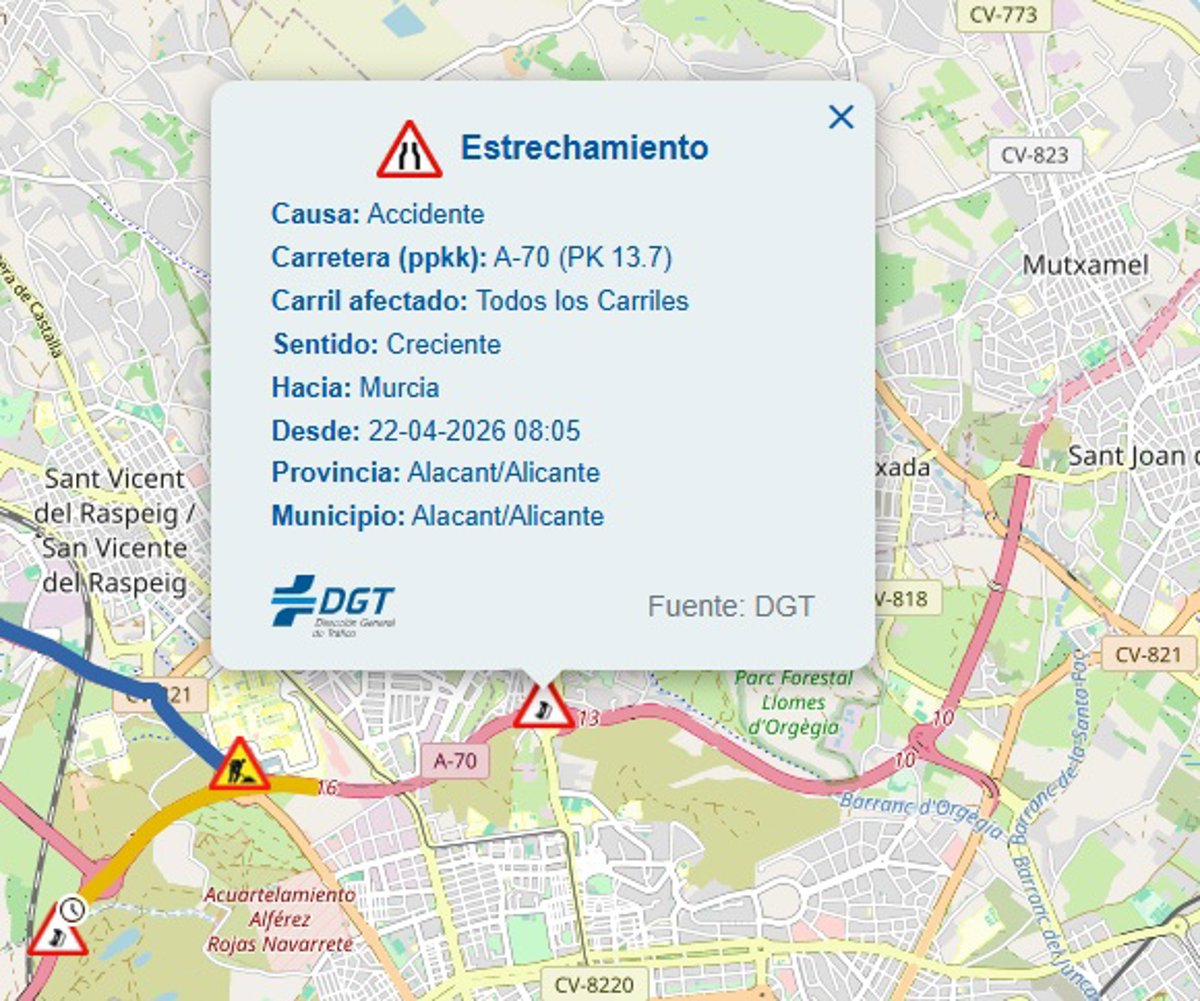 Según ha informado la Dirección General de Tráfico (DGT), el accidente ha tenido lugar en esta autovía, sentido Elx, por causas que no han trascendido.