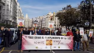 Varios sindicatos de taxistas se han movilizado este martes por el centro de València y frente a la sede de la Conselleria de Vivienda, Obras Públicas y Vertebración del Territorio y el consistorio valenciano para reclamar que se regule "con urgencia" el sector de las VTC en la Comunitat, así como que se lleven a cabo las modificaciones "oportunas" de las ordenanzas municipales para regular su actividad.