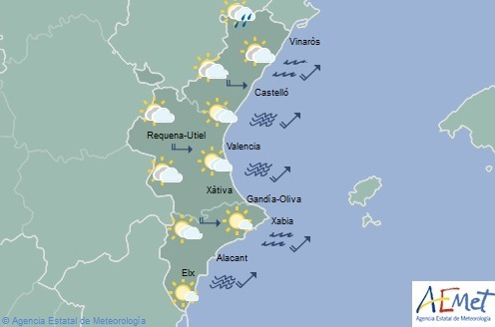 La mínima más elevada la tendrán en València, con 15 grados, mientras que en Castellón, Alicante, Dénia y Gandia tendrán 14 grados.