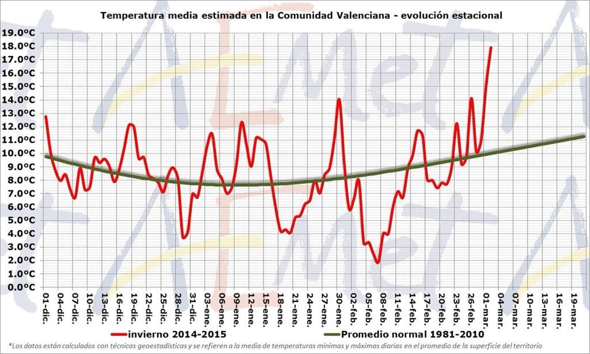 El descenso térmico de este martes respecto al lunes ha sido en el conjunto de la Comunitat "notable" --entre seis y diez grados--, aunque en algunas zonas ha sido "extraordinario", con variaciones de más de diez grados.