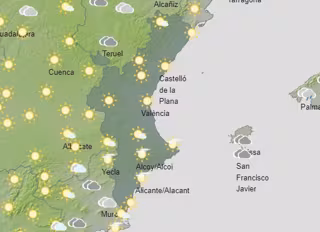 Durante la jornada predominará el cielo poco nuboso o despejado, aunque hacia el final del día se formarán intervalos nubosos en el litoral de Valencia y Alicante, con baja probabilidad de chubascos dispersos. Por su lado, la cota de nieve se situará en torno a 600 metros y se esperan también heladas en el interior.