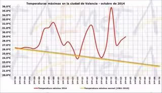 Las temperaturas diurnas de estos días en la Comunitat Valenciana son 6º grados superiores a lo normal de estas fechas, aunque se prevé que a partir del domingo vayan descendiendo hasta acercarse a valores normales, según ha informado la Agencia Estatal de Meteorología (Aemet).