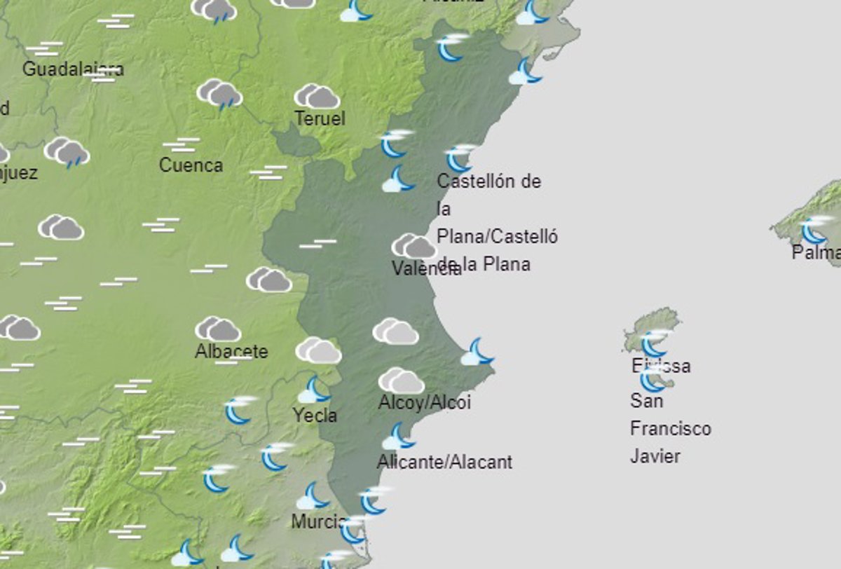 Las temperaturas registrarán este martes un ascenso generalizado en la Comunitat Valenciana, que será notable para el caso de las mínimas en zonas del interior en una jornada en la que el viento soplará del oeste moderado, según la predicción de la Aemet.
