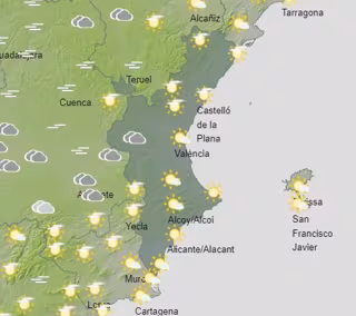 Finalmente, en Alicante, se esperan máximas de 24 en Elx, 23 en Dénia y Orihuela, y 22 en Alcoi y Alicante. Las mínimas serán de 10 en Alcoi, 11 en Orihuela, 12 en Dénia y Elx, y 13 en Alicante.