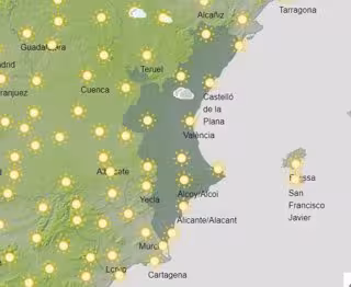 Por su parte, el viento soplará variable flojo, con predominio de la componente oeste en Valencia, y girando a componente sur moderado en los litorales de Valencia y de Alicante.