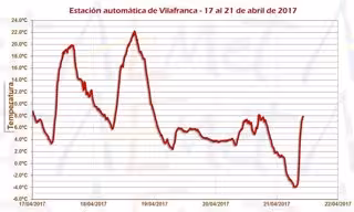 La mínima se ha alcanzado en la localidad castellonense de Vilafranca, donde se han alcanzado los -3.9ºC, la temperatura más baja en un mes de abril desde hacer 12 años, ha resaltado las mismas fuentes. También en esta provincia, Fredes ha registrado -1ºC y Atzeneta del Maestrat -0.9.