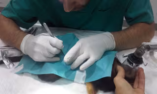 Después de realizar un examen físico, los veterinarios comprobaron que el animal presentaba una masa tumoral en el abdomen y procedieron a tomar una muestra para ser analizada en un laboratorio. La extracción de la biopsia se llevó a cabo mediante una ecografía guiada. Una vez conocidos los resultados, se tomó la decisión de extirpar el tumor.