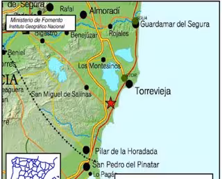 Un terremoto de 2,4 grados en la escala de Richter se ha registrado en torno a las 8.38 horas de este lunes (6.38 hora GTM) en el sur del término muninicipal de Torrevieja (Alicante), según informa en su página web el Instituto Geográfico Nacional (IGN). El seísmo se ha registrado al sureste de Torrevieja, al sur de las salinas, y a 16 kilómetros de profundidad.