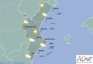 En el litoral de Alicante, el viento será del nordeste flojo a moderado; mientras que en el resto será variable flojo con predominio de la componente este, según Aemet.
