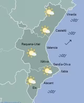 Así, esta jornada habrá nubes de evolución diurna en zonas de montaña del interior norte sin descartar algún chubasco en el interior de Castellón. Las temperaturas mínimas se mantendrán con pocos cambios mientras que las máximas irán en ascenso.