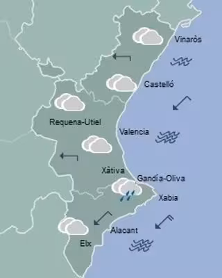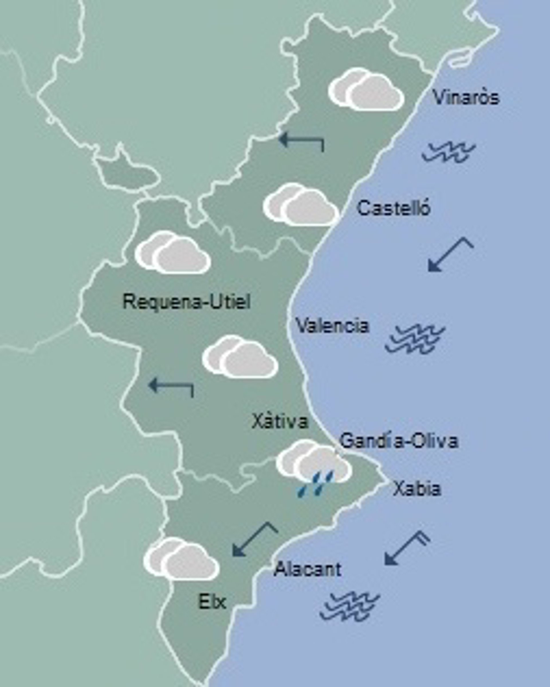 Las temperaturas mínimas se mantendrán con pocos cambios y las máximas en descenso, más acusado en el interior de Valencia y Alicante ya que no se superarán los 19º. El viento soplará del este y nordeste flojo a moderado.