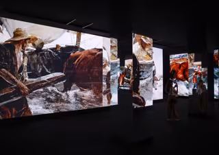 Junto con la contemplación de la obra original, la exposición ofrece un recorrido sensorial a lo largo de una superficie de 215 metros cuadrados de multipantallas LED en las que hay un total de 32 millones de píxeles. El conjunto proyecta cientos de imágenes en movimiento formadas por pinturas de distinto formato, fotografías y artículos de periódico, acompañados de dibujos y escritos personales.