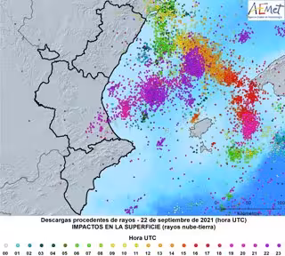 La tormenta de anoche ha dejado 6.000 rayos entre tierra, mar y las nubes en la Comunitat Valenciana, según ha informado la Agencia Estatal de Meteorología (Aemet).