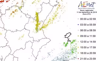 La "breve" pero "intensa" tormenta que atravesó este martes la Comunitat Valenciana dejó mucha actividad, con 1.523 rayos que impactaron dentro del territorio, y hasta un acumulado de 45 litros por metro cuadrado, según Aemet.