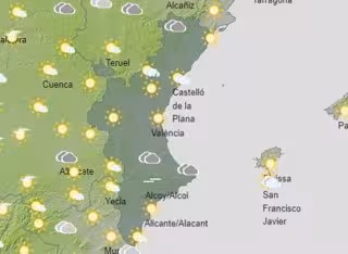 Durante la jornada, predominarán los cielos nubosos y con intervalos nubosos en el sur de Alicante. Además, en las zonas del interior se espera una nubosidad baja matinal que puede ir acompañada de alguna bruma.