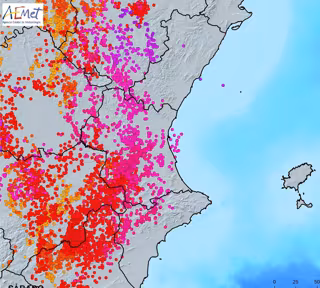 Imagen de los rayos caídos en territorio de la Comunitat Valenciana - AEMET