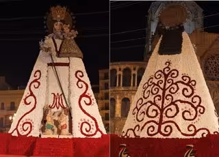 El coordinador de los 'Vestidors de la Verge'", José García Bosch, ha destacado que, para confeccionar el manto de la Mare de Déu, se emplean "cerca de 60.000 ramos de claveles, en su mayoría blancos y también rojos y rosas", que colocan en la imagen de la patrona que cada año se instala frente a su Basílica, según ha explicado.