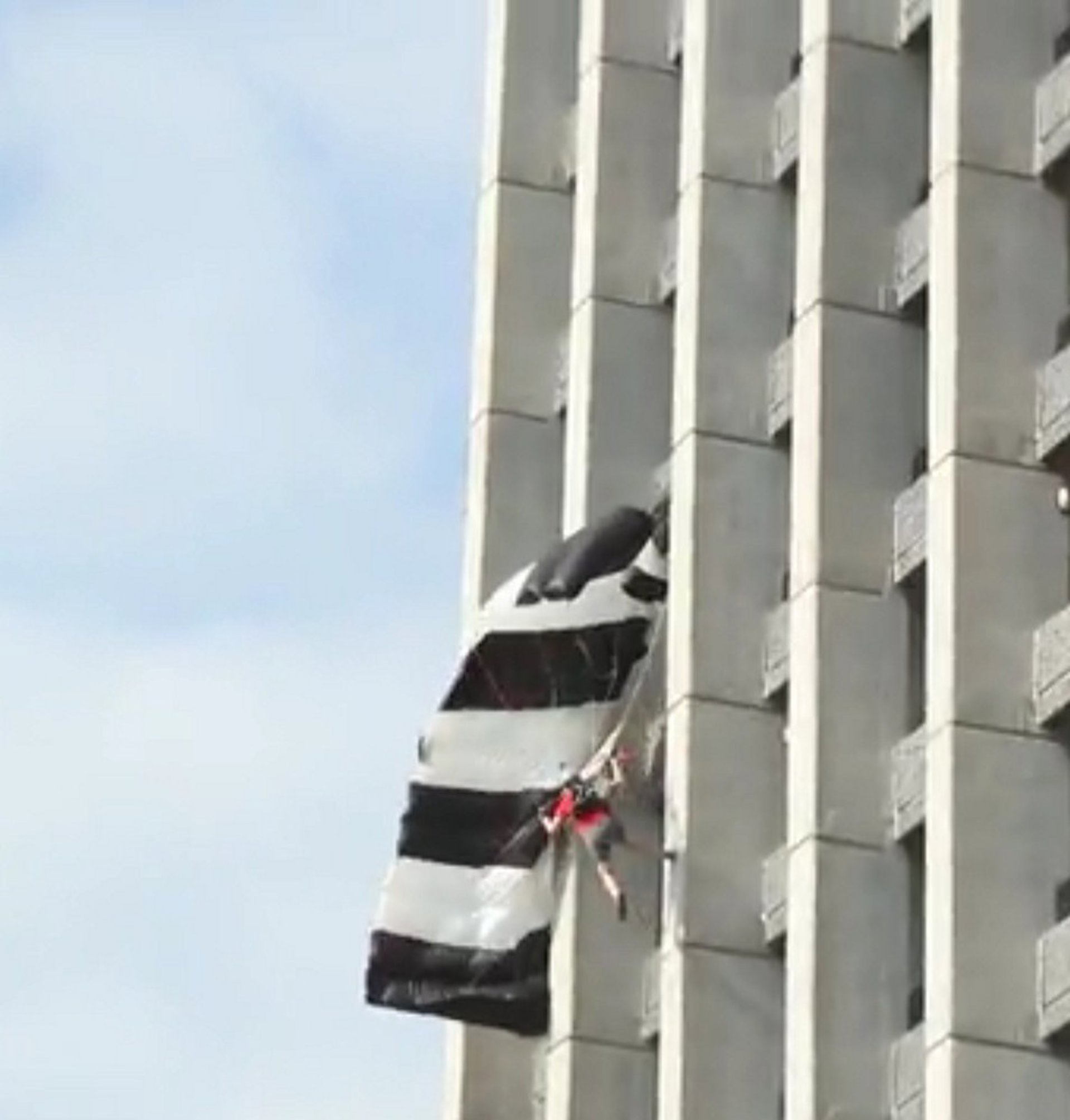 Tras golpearse, la joven perdió el equilibrio e intentó separarse del hotel sin conseguirlo, por lo que ha terminado realizando un aterrizaje forzoso en la terraza de una habitación de la planta 10 "para asombro del público".