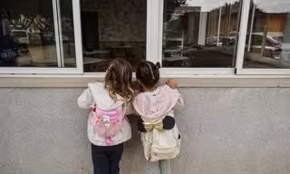 Dos niñas observan el interior vacío del colegio CEIP Amparo Alabau (archivo) - Rober Solsona - Europa Press