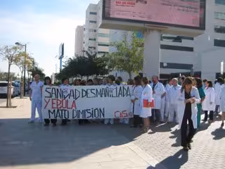 Una cincuentena de trabajadores y usuarios se han concentrado este viernes a las puertas del hospital La Fe de Valencia en protesta por "la monumental negligencia, temeridad y atentado contra la salud pública que las decisiones de este gobierno están generando con la repatriación de d os misioneros enfermos de Ébola llevada a cabo en agosto en un contexto de deterioro y desmantelamiento de la sanidad pública", informa la Coordinadora Antiprivatización de la Sanidad Pública (CAS PV).