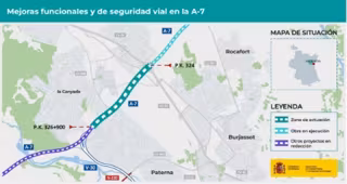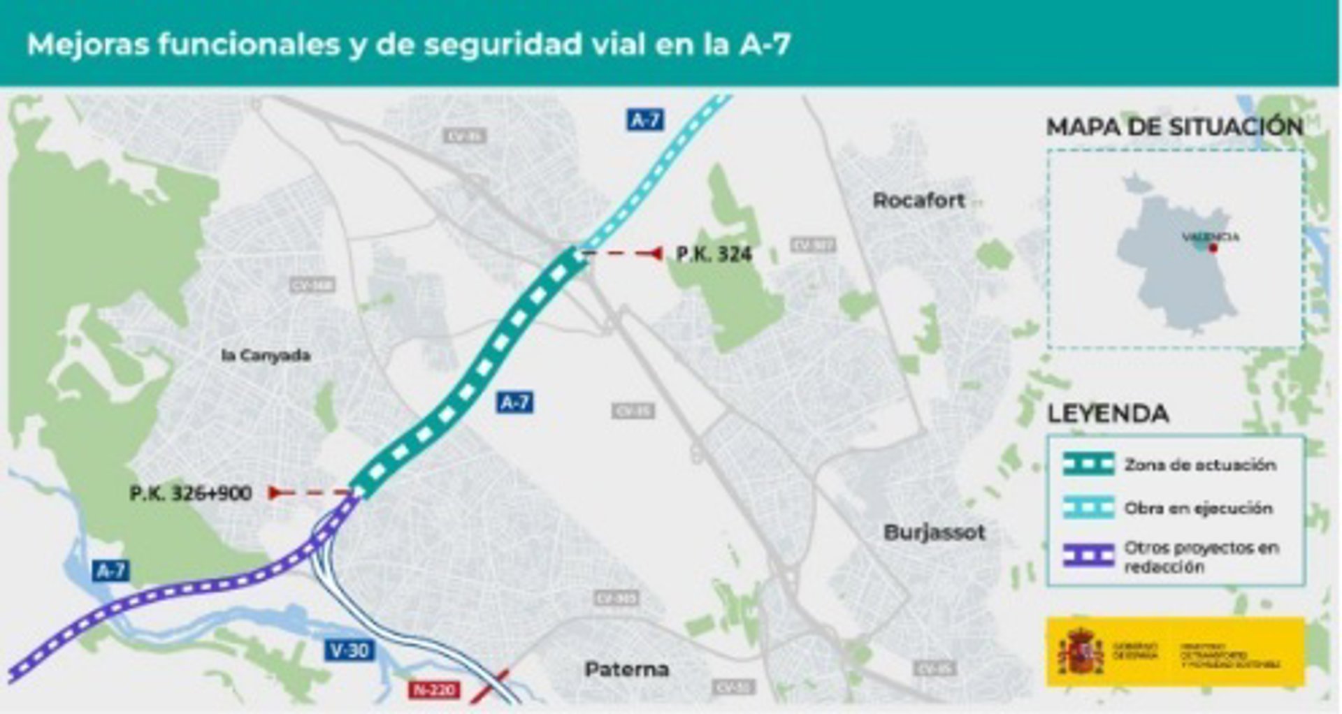 Esta actuación forma parte de las que el Ministerio de Transportes y Movilidad Sostenible está llevando cabo sobre la autovía A-7, en el denominado bypass de valencia, el cual circunvala el área metropolitana de la ciudad de Valencia por el oeste.