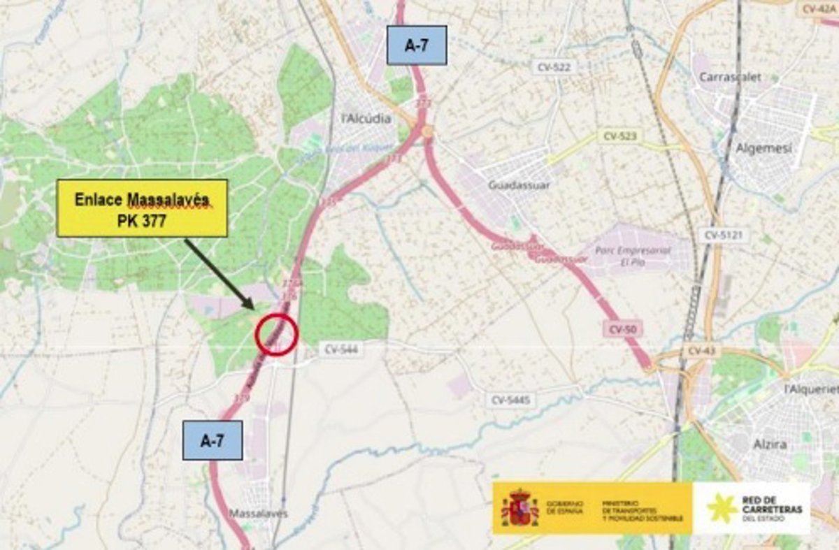 El Ministerio de Transportes y Movilidad Sostenible ha licitado por 681.832,62 euros, IVA incluido, la redacción del proyecto de remodelación del enlace de Massalavés situado en el kilómetro 377 de la A-7, en la provincia de Valencia. El anuncio correspondiente será publicado próximamente en el Boletín Oficial del Estado.