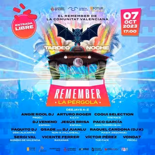 La Pérgola de La Marina de Valncia celebrará este sábado 7 "un gran tardeo + noche remember sin pausa" con motivo del 9 d'Octubre, Día de la Comunitat Valenciana, con entrada libre para el público y comienzo a las 17 horas.