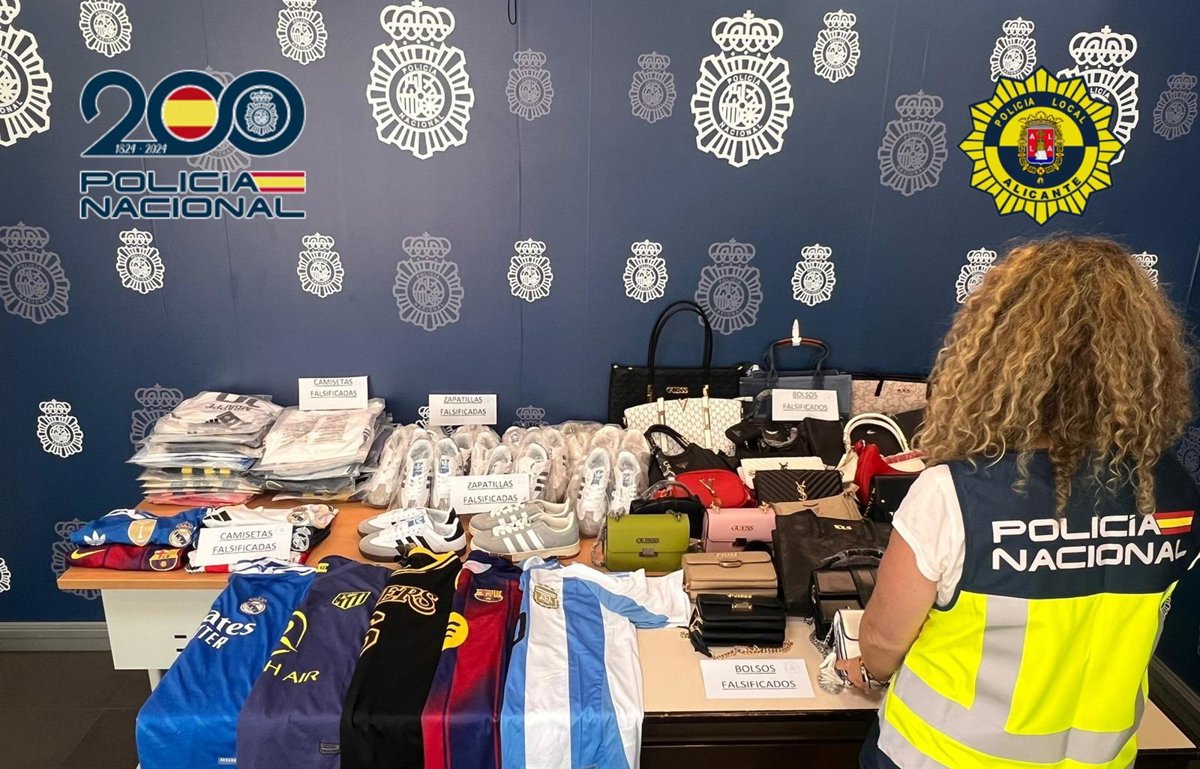 Más tarde, y en un dispositivo conjunto con la Policía Local de Alicante, se identificó a varias personas que presuntamente transportaban ropa y complementos de moda. En pocas horas, los agentes se incautaron de casi un millar de prendas falsificadas.