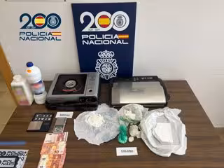 Los agentes localizaron al segundo investigado y llevaron a cabo dos registros, uno de ellos en un domicilio de Mutxamel y otro en un trastero de Sant Joan d'Alacant, propiedad de uno de los detenidos, donde los agentes intervinieron cerca de 200 gramos de cocaína, balanzas de precisión, una máquina envasadora, una centrifugadora-horno de gas, diversos productos químicos y útiles para preparar dosis.