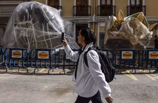 Una mujer fotografía la falla Convento Jerusalén durante su montaje, a 10 de marzo de 2025, en Valencia, Comunidad Valenciana (España). - Rober Solsona - Europa Press