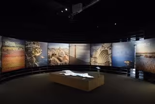 El conjunto expositivo se divide en cuatro ámbitos, en el primero se realizará una aproximación a la definición de paisaje mediante una Sandbox y mapas interactivos que pretenden hacer reflexionar al visitante acerca de lo que entiende por turismo y entorno. En el segundo espacio, a través de una proyección de gran formato, se analizarán los valores patrimoniales territoriales que dotan de carácter a un paisaje, como su patrimonio material e inmaterial.