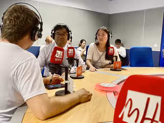 Posteriormente, han visitado el plató principal de Radio UMH, ubicado en el edificio Atzavares del campus de Elche, donde el decano de la Escuela de Medios e Ingeniería de la Universidad de Comunicación de Zhejiang, Yu Dingguo, ha animado a estudiantes y miembros de la comunidad universitaria a asistir a Zhejiang y a participar en sus programas periodísticos.