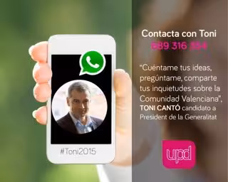 Unión Progreso y Democracia en la Comunitat Valenciana va a poner a disposición de los ciudadanos un número de teléfono móvil para que el candidato a la Presidencia de la Generalitat por la formación, Toni Cantó, reciba preguntas, opiniones y propuestas a través de WhatsApp.