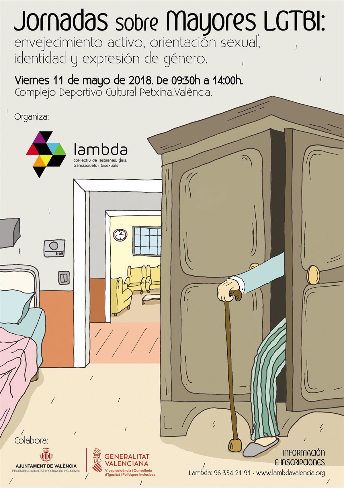València acoge este viernes, 11 de mayo, una jornada sobre mayores LGTBI, con ponentes de ámbito nacional, para analizar la situación de discriminación del colectivo y ofrecer propuestas para que se enfrenten a las situaciones de vulnerabilidad. Están organizada por Lambda, el colectivo de lesbianas, gais, transexuales y bisexuales, y cuenta con la colaboración del Ayuntamiento y la Generalitat.
