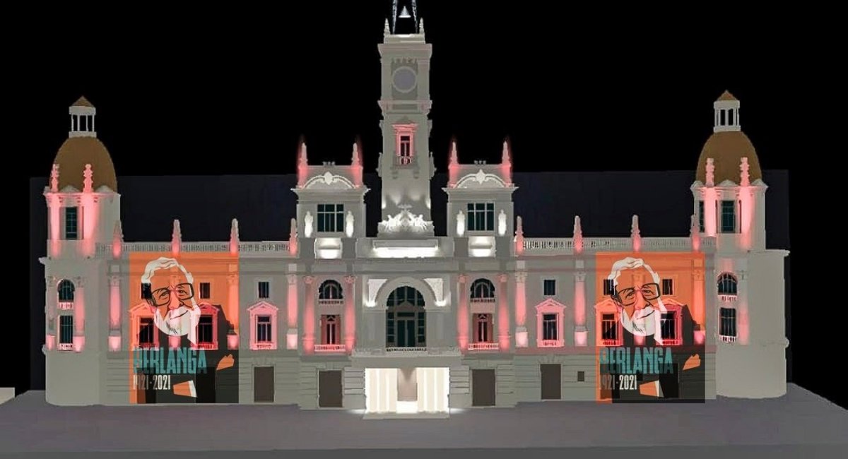 La fachada principal del Ayuntamiento de Valncia será este sábado, día en el que se cumple el centenario del nacimiento del cineasta valenciano Luis García Berlanga, la pantalla en la que se proyectará y acercará a la ciudadanía la imagen del cartel que anuncia el Año dedicado al realizar.