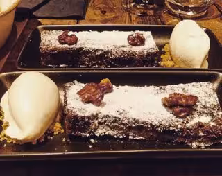 Para la cena los entrantes fueron: caballa en media salazón y queso casoleta; coca de sardina ahumada con tomate verde y queso comté; emulsión de foie con calabaza y arrope; canelón de pollo de corral con manzana, salvia y quimchee; el plato principal: paletilla de cordero a baja temperatura con boniato y gel de cítricos; y de postre: petit-suisse de fresa con espuma de plátano y esponja de frutos rojos con yogurt griego y arena de cacao.