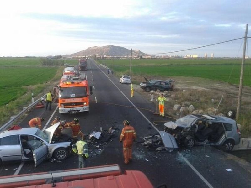 Un hombre de 82 años falleció y su mujer de 80 años resultó herida en el accidente múltiple que se registró en la tarde de este lunes en la localidad valenciana de Cullera. En el siniestro también resultó herido un hombre de 41 años, según han informado fuentes del CICU y del Consorcio de Bomberos.
