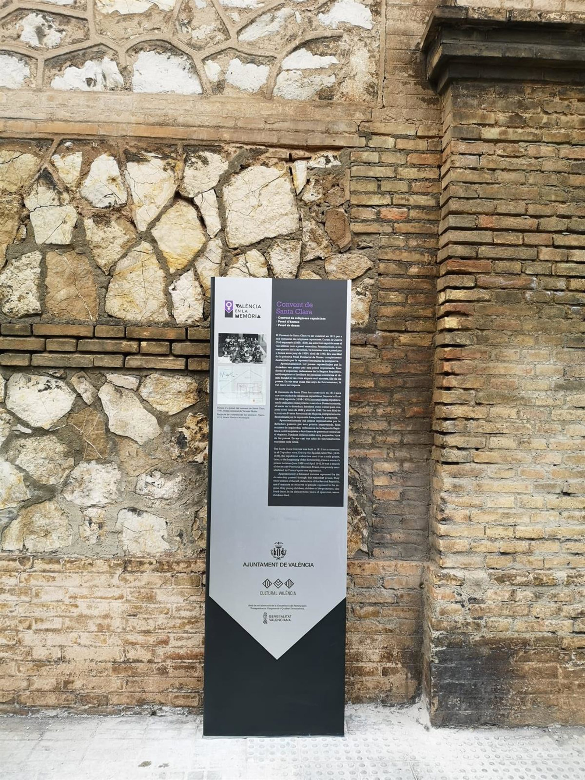 La Concejalía de Patrimonio y Recursos Culturales del Ayuntamiento de Valncia ha instalado este viernes un monolito en memoria de las mujeres encarceladas en el convento de Santa Clara durante la dictadura franquista.