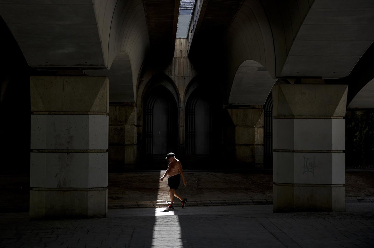 Archivo - Un hombre camina sin camiseta en el antiguo cauce del río Turia (archivo) - Rober Solsona - Europa Press - Archivo