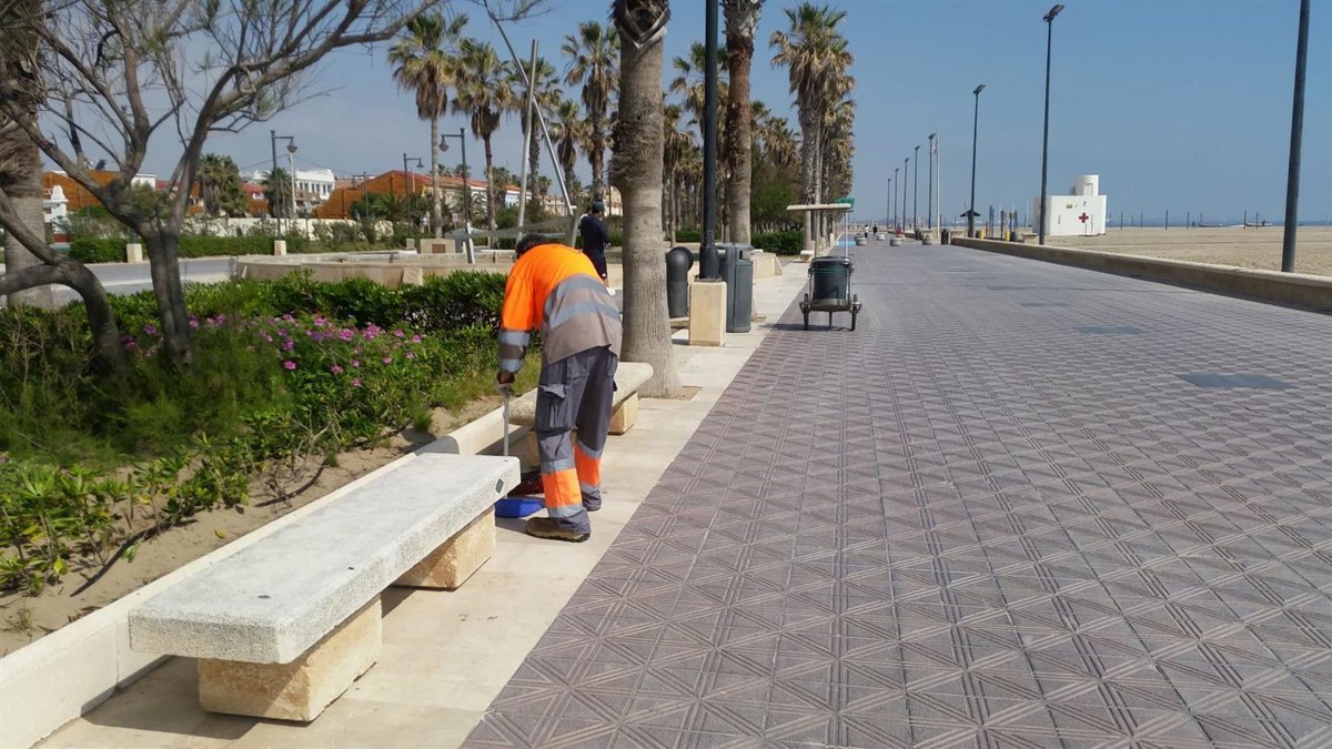 Archivo - Imagen de archivo de limpieza en el paseo marítimo de Valncia. - AYUNTAMIENTO DE VALNCIA - Archivo