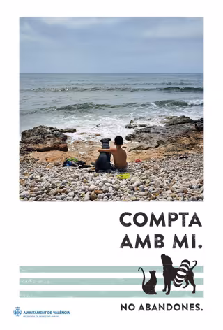 El Ayuntamiento de Valncia lanza una campaña para concienciar y "conmover" a la ciudadanía contra el abandono animal, con fotografías que no están preparadas y que son reales y espontáneas de situaciones cotidianas, de gente que decide contar con su animal de compañía también en vacaciones.