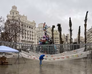 La administración local ha afirmado que los miembros de esta empresa han estado "desafiando a la lluvia" y preparando su 'mascletà' durante toda la mañana de este martes, "trabajando duro para montar todo lo que sea posible".