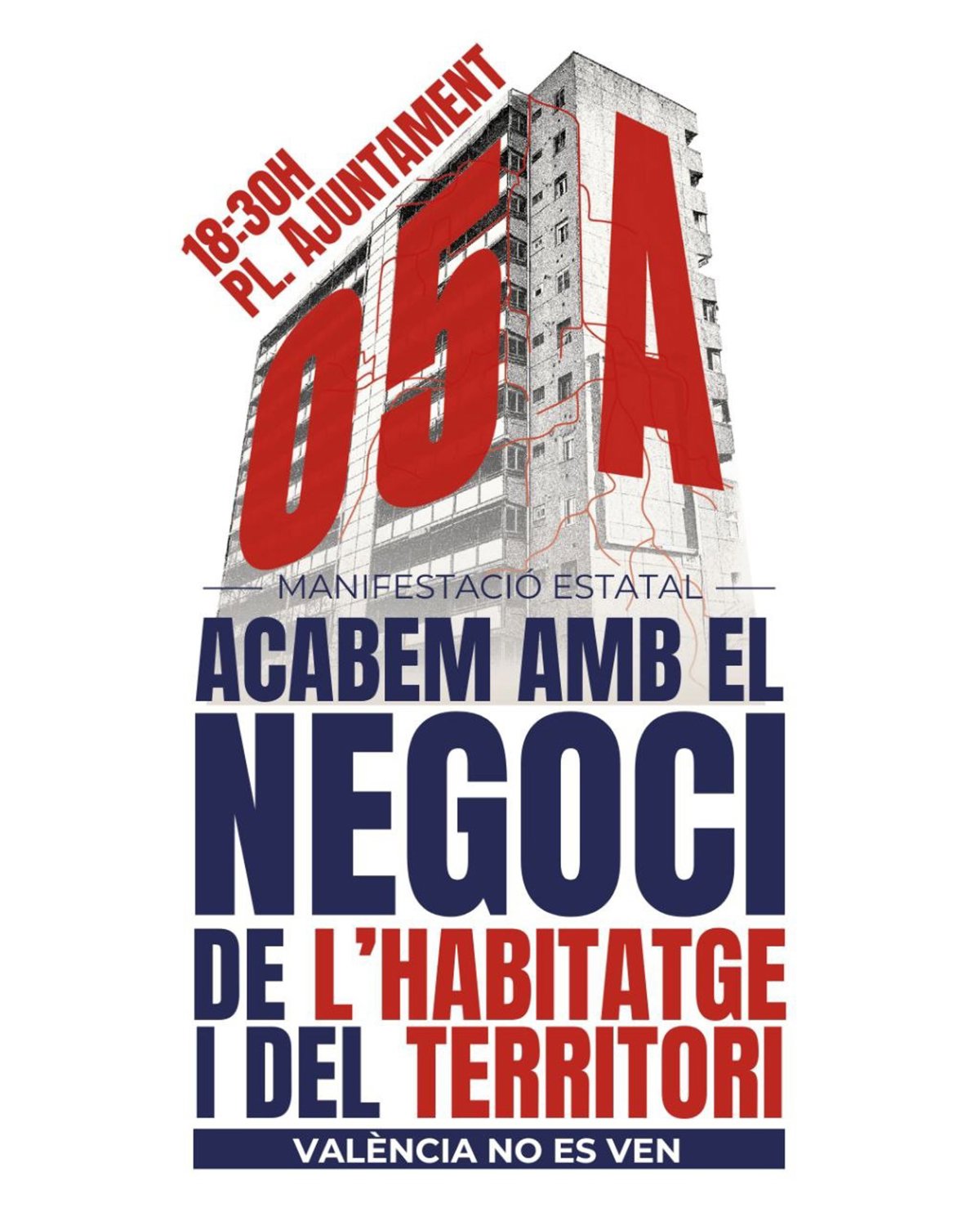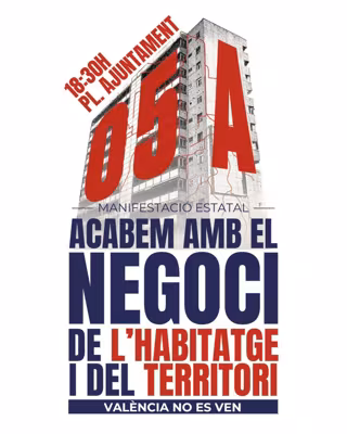 En València, ha explicado Belenguer, las demandas versan tanto sobre la vivienda como sobre el territorio. En relación a la vivienda, reclamarán la regulación del precio de alquiler; la creación de vivienda pública a precio asequible y en cesión de uso cooperativo; frenar los desahucios; la prohibición de apartamentos turísticos y acabar con la compra-venta especulativa.